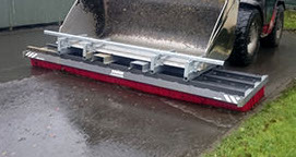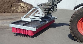 Überall dort sehr gut, wo leicht fließfähiges Material (Getreide, Raps, Dünger,usw.) gefegt werden soll. Auf glatten Untergründen sehr gut einsetzbar, wie auch als Futterschieber. Für kleine bis mittlere Radlader, Gabelstapler, Hoftracs usw.